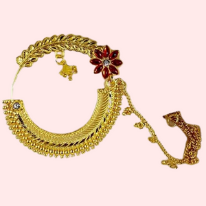 Elevate your ethnic look with this Classic Gold Plated Round Nath from Uttarakhand. Crafted with care, this stunning piece features a beautiful round design that adds elegance to any outfit. The gold plating gives it a luxurious shine, making it perfect for special occasions. Its lightweight design ensures comfort while wearing. This Nath is an essential accessory for traditional celebrations, weddings, or festive events. Pair it with your favorite attire to make a statement. Embrace the rich culture of Uttarakhand with this exquisite piece of jewelry!