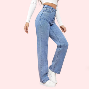 Refresh your wardrobe with our Women's Fashionable Washed High Waist Straight Jeans. Designed with a flattering high waist, these jeans offer a sleek and stylish fit. The straight leg cut gives a classic look that's easy to dress up or down. The washed finish adds a trendy, worn-in vibe, perfect for a casual yet chic outfit. Made from comfortable, durable fabric, these jeans are perfect for all-day wear. With five-pocket styling and a zip-fly closure, they're both practical and fashionable, making them a versatile staple in your collection.