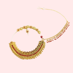 The Elegant Gold-Plated Garhwali Nath – Big Size Tradition is a beautiful nose ring that adds a touch of traditional style to your look. Made with care and attention to detail, it features a shiny gold finish that stands out. This big-sized Nath is perfect for weddings and special events, making it a standout accessory. It sits comfortably on your nose and highlights the rich culture of Garhwal. Whether you’re celebrating a special occasion or embracing your roots, this Nath is a perfect choice to enhance your beauty.