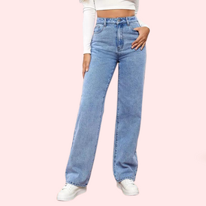 Refresh your wardrobe with our Women's Fashionable Washed High Waist Straight Jeans. Designed with a flattering high waist, these jeans offer a sleek and stylish fit. The straight leg cut gives a classic look that's easy to dress up or down. The washed finish adds a trendy, worn-in vibe, perfect for a casual yet chic outfit. Made from comfortable, durable fabric, these jeans are perfect for all-day wear. With five-pocket styling and a zip-fly closure, they're both practical and fashionable, making them a versatile staple in your collection.